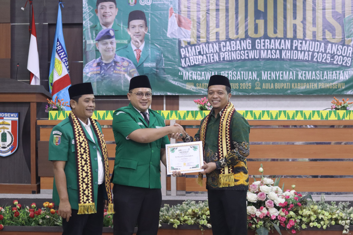Pengurus Pimpinan Cabang (PC) Gerakan Pemuda (GP) Ansor Kabupaten Pringsewu resmi dilantik dalam sebuah acara khidmat yang digelar di Aula Kantor Bupati Pringsewu.